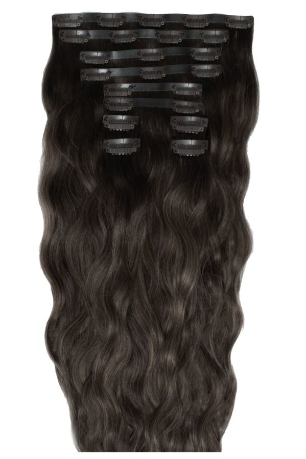 18" Beach Wave Double Hair Set Clip-In Extensions - Raven
