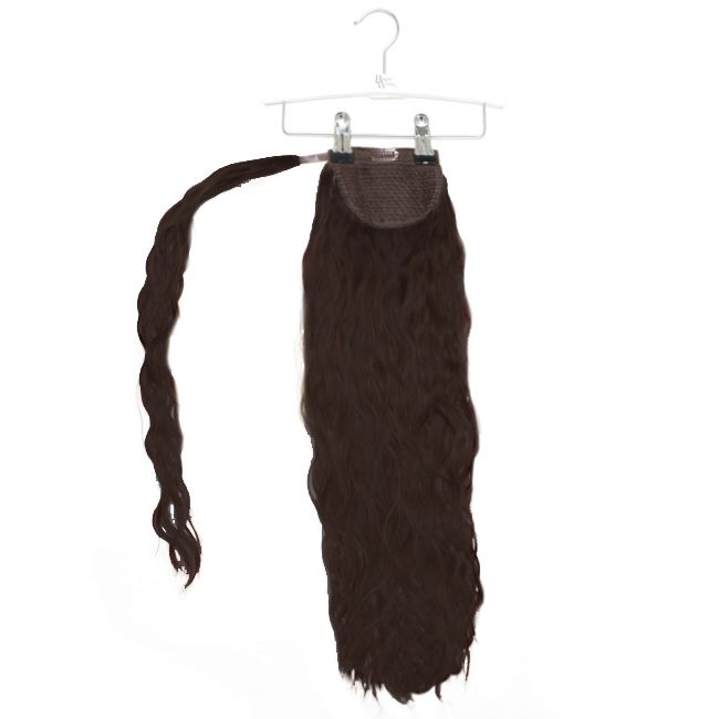 Simply attach over your own pony and WRAP the extra piece of hair securely at the base