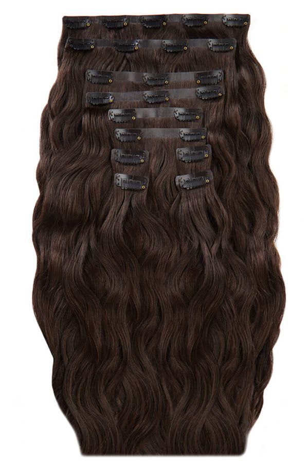 22" Beach Wave Double Hair Set Clip-In Extensions - Ebony